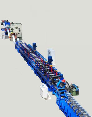 設備用途: 貨架立柱冷彎型鋼設備包括液壓開卷、校平、送料、沖孔、成型、剪切、出料。控制采用西門子PLC,貨架立柱生產線,觸摸屏輸入,自動化程度高、操作方便、生產效率高,整線生產速度可達到40m/min。