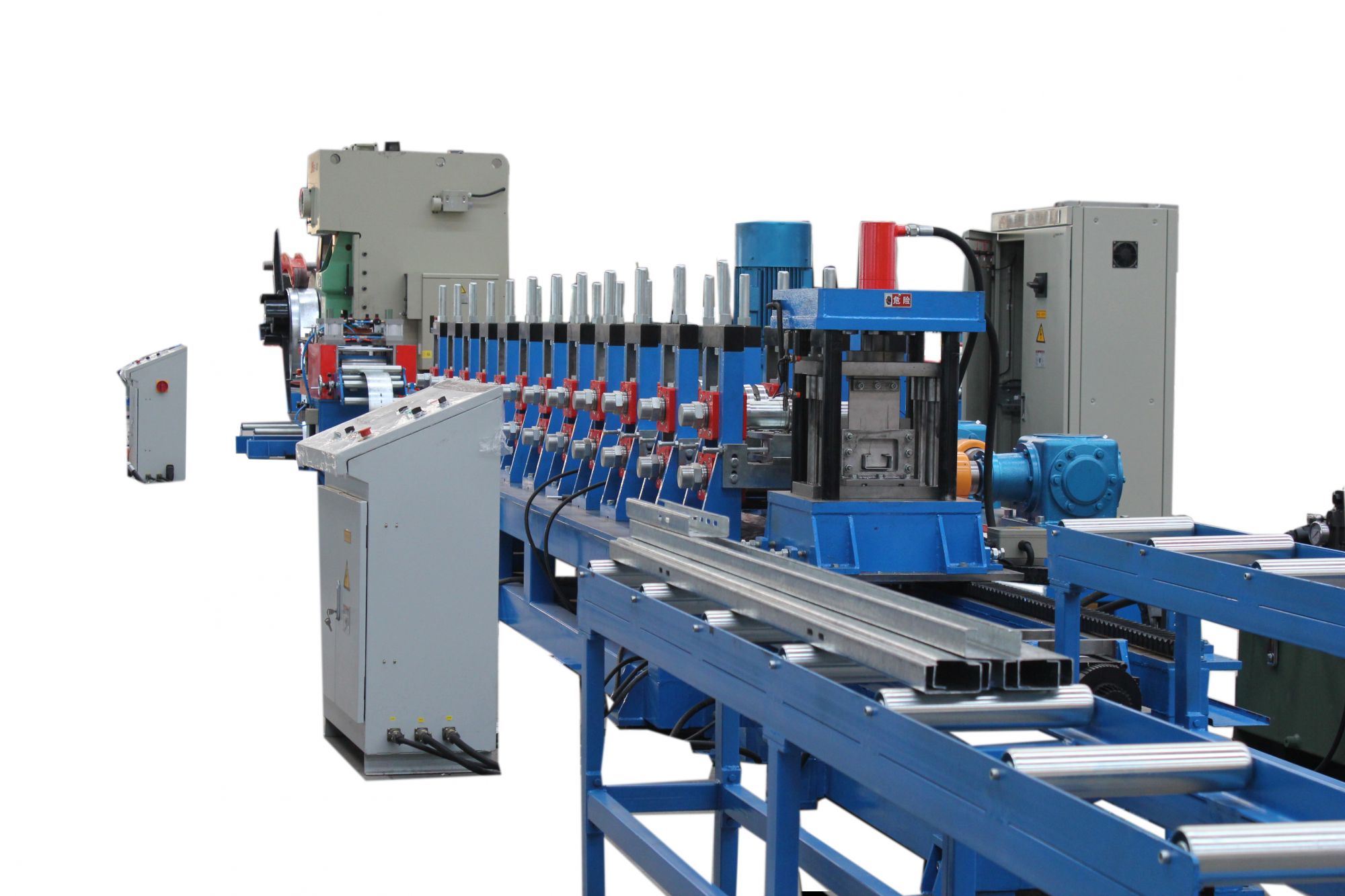通過切換可生產多種截面、不同規格支架型材。成品直線度好。該線自動化程度高,速度快,生產線速度:10米/分鐘。