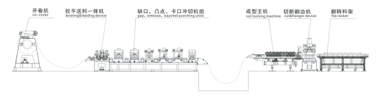 開卷—入料導正—較平——成型—切斷--出料
