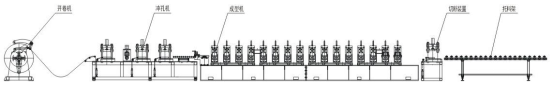 電氣罩殼自動(dòng)生產(chǎn)線該生產(chǎn)線由上料小車、開卷機(jī)、入料導(dǎo)正、沖孔、切斷、輥壓成型機(jī)、成型剪、自動(dòng)碼垛、液壓系統(tǒng)、電氣控制系統(tǒng)組成。該生產(chǎn)線在線不停機(jī)沖孔、不停機(jī)切斷